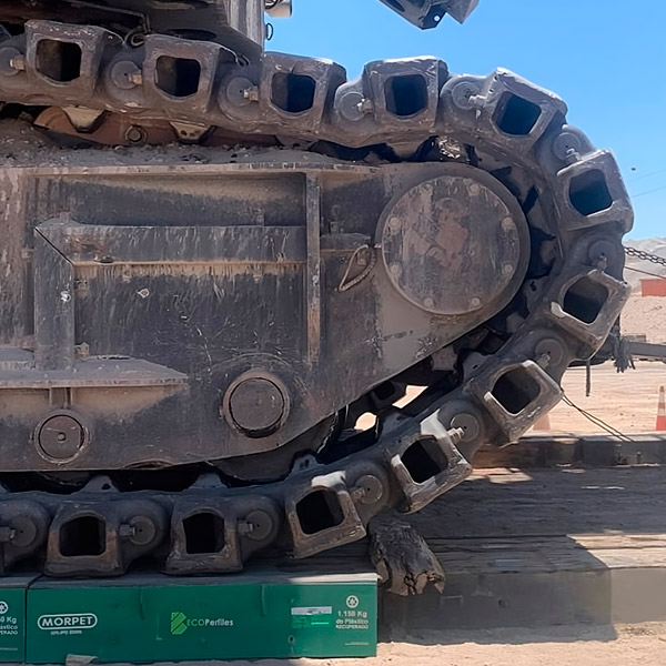 Los Ecoperfiles® son una solución ideal para la sustitución de la madera utilizada como plataformas de maquinaria de alto tonelaje. Con diseños especiales para cada requerimiento, las plataformas a base de plástico reciclado, contribuyen a la recuperación masiva de residuos plásticos, y nos permiten fabricar plataformas resistentes y duraderas para ayudar las tareas de mantenimiento de maquinaria pesada, pinochos de soportación, entre otras estructuras. Resistentes a la humedad, aceites e hidrocarburos, nuestras plataformas son ideales para condiciones de intemperie, los insectos, y con propiedades físicas de isotropía, nuestros Ecoperfiles® resisten la compresión de maquinaria pesada como la P&H4100 de cerca de 1.5 mil toneladas, y están fabricados para tener larga vida útil.